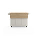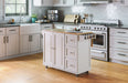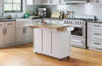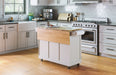 Maximize the storage space and work surface in your kitchen with this Dolly Madison Kitchen Cart by Homestyles. The natural, solid hardwood surface sits atop an off-white, durable engineered wood frame, which can be easily moved throughout your space on lockable casters to bring convenience right where it’s needed most. Loaded with space-saving features and storage options, it brings the ultimate in versatility and charm to your kitchen.