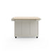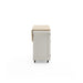 - Off-white finish with natural wood top and brushed nickel hardware