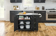 Maximize the storage space and work surface in your kitchen with this Dolly Madison Kitchen Cart by Homestyles. The stainless steel surface sits atop a black, durable engineered wood frame, which can be easily moved throughout your space on lockable casters to bring convenience right where it’s needed most. Loaded with space-saving features and storage options, it brings the ultimate in versatility and charm to your kitchen.
