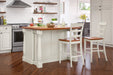 At the center of the kitchen of your dreams lies the Homestyles Monarch Kitchen Island 3-Piece Set. This space-saving island features a solid hardwood top and a base with columns on each corner. The combination of drawers and shelves give you the storage flexibility needed for pots and pans and countertop appliances. Extend the drop leaf bar to create valuable space for eating breakfast in the morning or entertaining in the evening. Pull up the two counter height stools to enjoy breakfast or a late night snack.