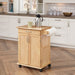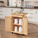 Add a little spice to your kitchen with this Homestyles General Line Kitchen Cart. Maneuver through your space to bring storage and convenience wherever needed. The natural finish matches any surrounding décor and the spacious storage keeps the space tidy. With solid construction and a durable clear coat, it is easy to clean and maintain.