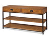 Capture a little of that arts and crafts style with this Homestyles Modern Craftsman Sofa Table. The solid poplar hardwood and veneer drawers and shelf sit atop a decorative metal foundation for a desirable mixed materials look. The durable construction of both the metal frame and the wood make this a truly timeless addition. Use it as a media console or as a larger console table in any room your home.