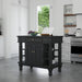 - Two open cabinets with six fixed shelves and one large center drawer accommodates kitchen utensils and other items.