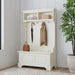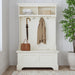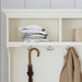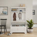 Clean up the mud room or accentuate any entryway with this Homestyles Naples Hall Tree. Whether used as a coat rack and storage bench or as impromptu seating when taking shoes off, it ups the ante on form and function. This versatile solution features an off-white finish that's easy to match and looks great in any environment.