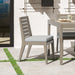 Any outdoor space becomes a desirable destination for entertaining or relaxing with this set of two Homestyles Sustain Armless Dining Chairs. The clean, classic styling and cushioned comfort creates an oasis under the sun. Each chair is made of water-resistant, gray acacia wood with a UV-resistant finish that delivers solid performance year after year.