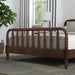 Add some ornate flair to a master suite or guest bedroom with the Spindle Queen Bed from Homestyles. Carefully crafted from solid mahogany wood and veneers, this bed features a rich, antiqued coffee brown stain that adds sophisticated warmth to more traditional bedrooms. Its slatted headboard and footboard showcase an arched silhouette with elaborately turned accents, making it a statement in the room.