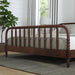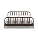 Add some ornate flair to a master suite or guest bedroom with the Spindle King Bed from Homestyles. Carefully crafted from solid mahogany wood and veneers, this bed features a rich, antiqued coffee brown stain that adds sophisticated warmth to more traditional bedrooms. Its slatted headboard and footboard showcase an arched silhouette with elaborately turned accents, making it a statement in the room.