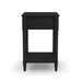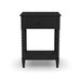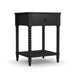 Add some ornate flair to a master suite or guest bedroom with the Spindle Nightstand from Homestyles. Carefully crafted with solid mahogany wood and veneers, this nightstand features a sleek black finish that pairs well with any aesthetic or color palette. It has one drawer with plenty of room for TV remotes or small bedroom essentials, and the elaborately turned spindle legs make it a statement in the room.