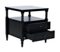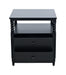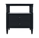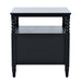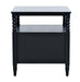 Add some ornate flair to a master suite or guest bedroom with the Spindle Nightstand. Carefully crafted with solid mahogany wood and veneers, this nightstand features a sleek black finish that pairs well with any aesthetic or color palette. It has one drawer with plenty of room for TV remotes or small bedroom essentials, and the elaborately turned spindle legs make it a statement in the room.