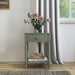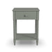 Elevate your bedroom with the exquisitely crafted Spindle nightstand, a blend of timeless design and modern appeal. Featuring ornate spindle accents, this serene, sage green nightstand adds gentle touch of color and sophistication to your room, while the drawer and lower shelf provide bedside storage space. Whether you're looking to enhance a cozy cottage retreat or add a hint of charm to a minimalist sanctuary, the Spindle nightstand promises to be a versatile and stylish companion for your bedroom ensemble.